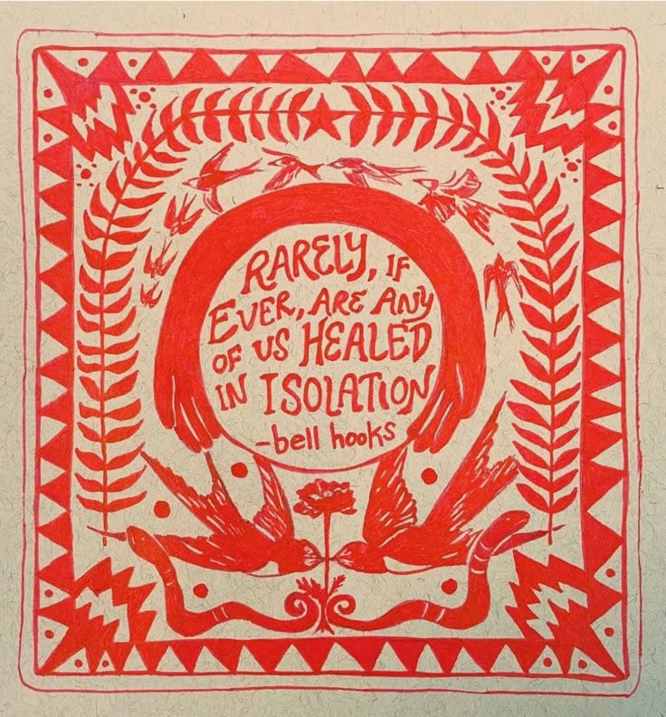 When we first got in this mess back in November of 2024, a lot of us reacted in the same way: This is going to be really bad. We need each other. You can see my call to come together in my very first Love Note. Over a year later, I live in a bustling city with people all around me and I spend most of my time with the same two beings. They are great, but I’m a far ways off from feeling I belong in community and miles and miles away from anyone else I really know.